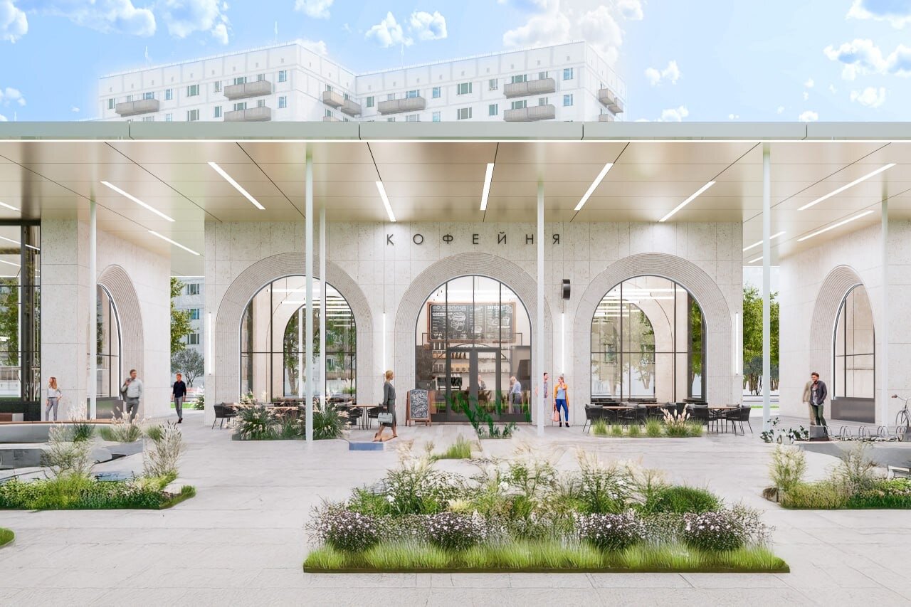 Арки будут основным дизайнерским элементом. Они составят часть сквозной перспективы через весь ансамбль. Таким образом создастся эффект открытого пространства.
