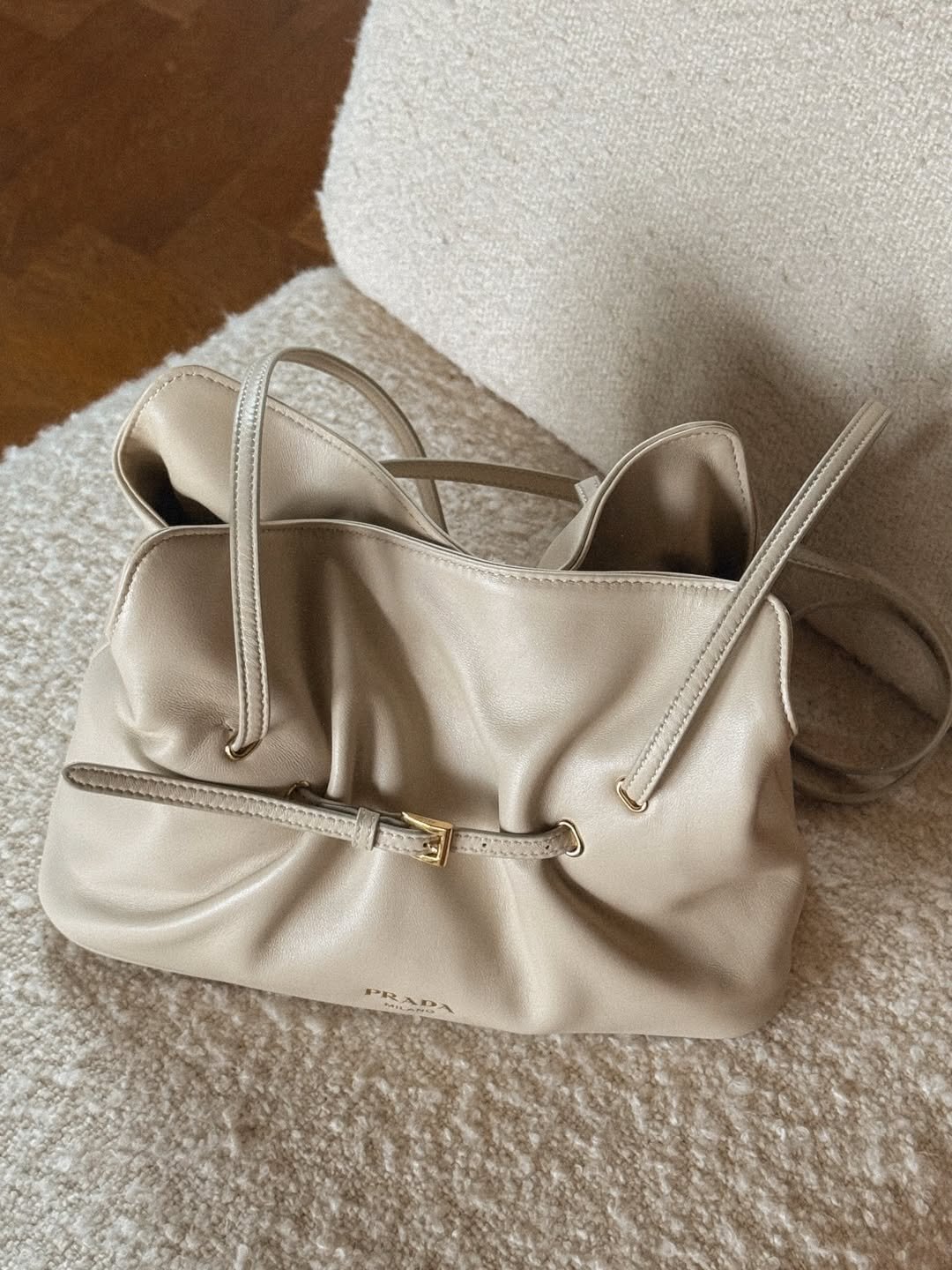 Сумка завладела вниманием зрителей на шоу Prada FW/2025-26. Причины популярности две: это вечная классика в современном исполнении и главная трендовая деталь гардероба этого года — ремень.