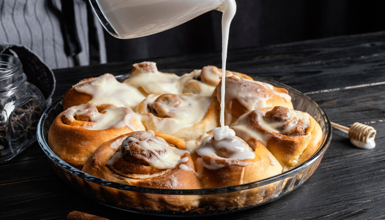 Яркий аромат булочек с корицей и сливочной глазурью создаёт в доме атмосферу праздника, поэтому за рубежом их называют рождественскими. Если вы любите их сладкий пряный вкус, предлагаем повторить эту выпечку дома.