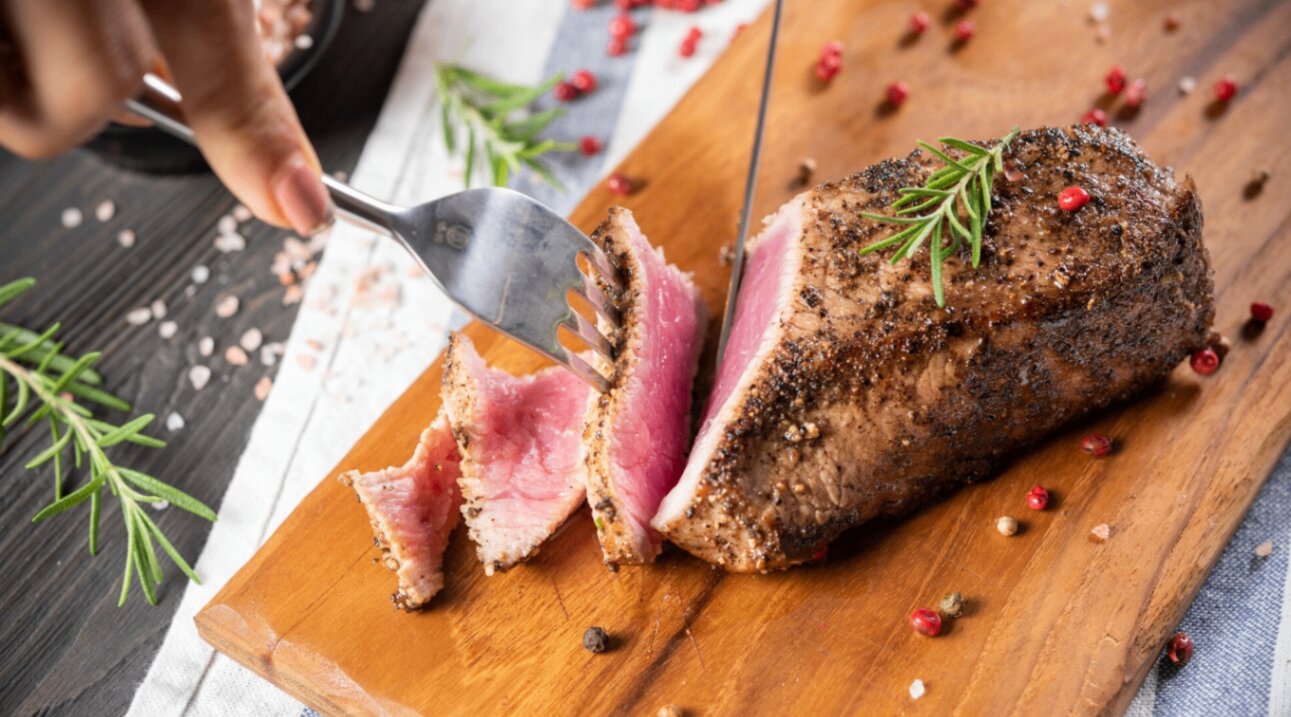 - Кусок говяжьей вырезки, жир нужно срезать до 0,5 см