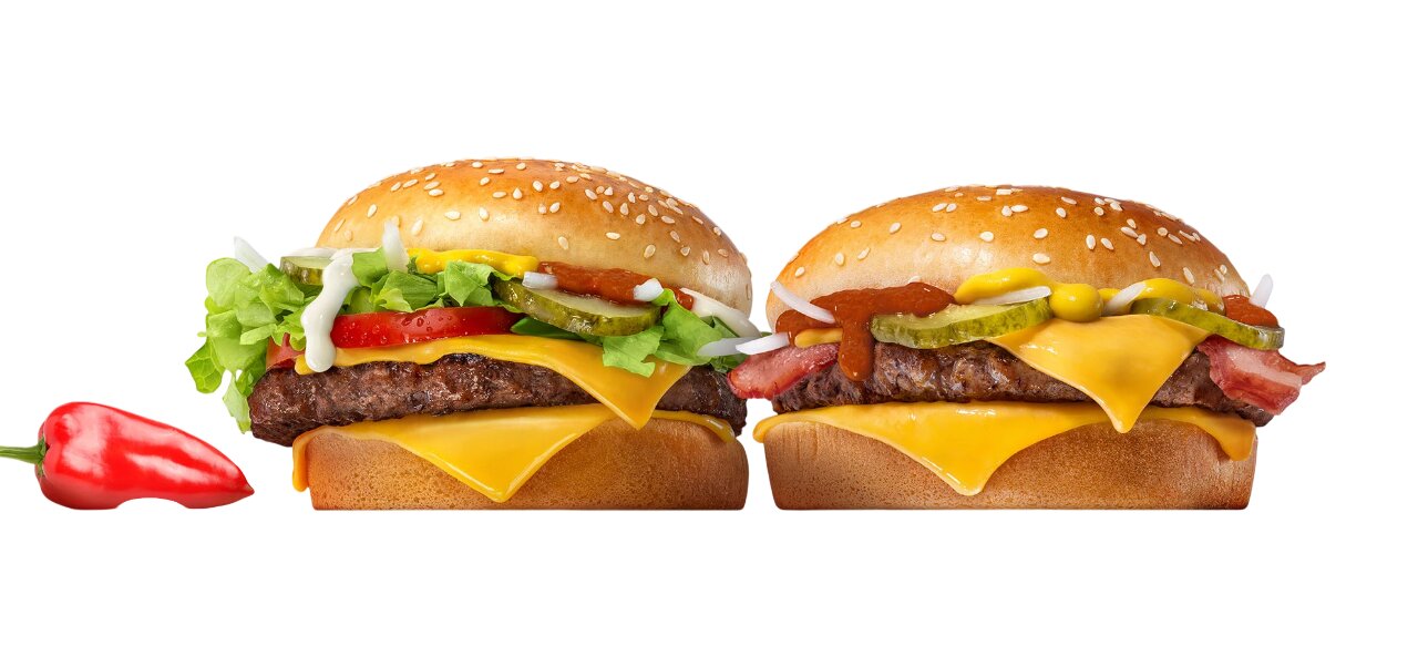 В состав Гранд Чипотл входят: бифштекс из натуральной говядины, карамелизированная булочка с кунжутом, сыр Чеддер, лук, маринованные огурцы, горчица, бекон и томатный соус Чипотл с добавлением перца чили и паприки. Вторая новинка отличается тем, что к ней добавили свежий салат, помидор и соус Традиционный.