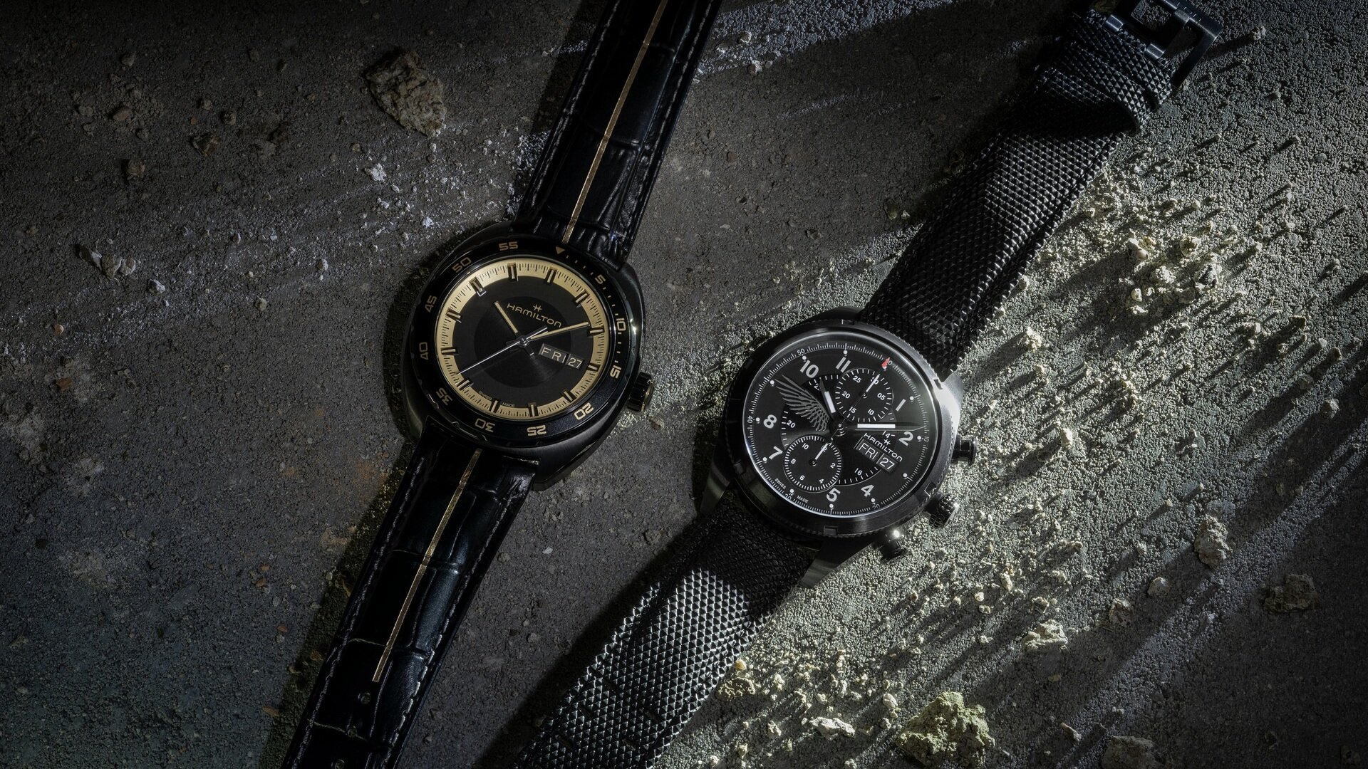 В лимитированную серию вошли две модели: полностью черная Khaki Field Auto Chrono и черно-золотые American Classic Pan Europ. Первую носит Леон Кеннеди, а вторую — Грейс Эшкрофт.