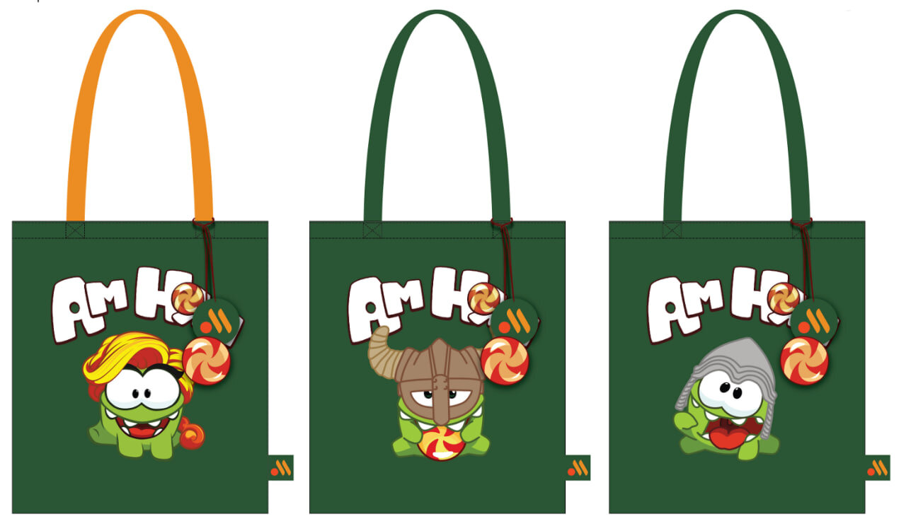 В рамках акции с персонажами игры Cut the Rope «Вкусно — и точка» представила эксклюзивную коллекцию шопперов. В нее вошли три сумки из 100% хлопка