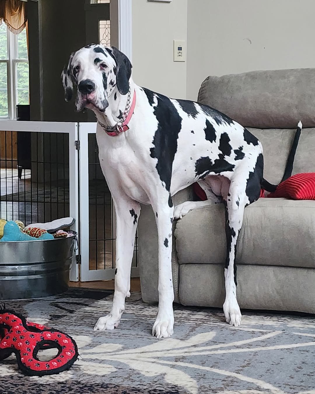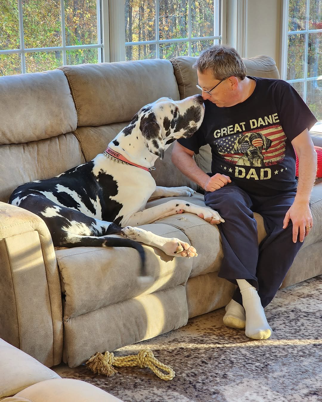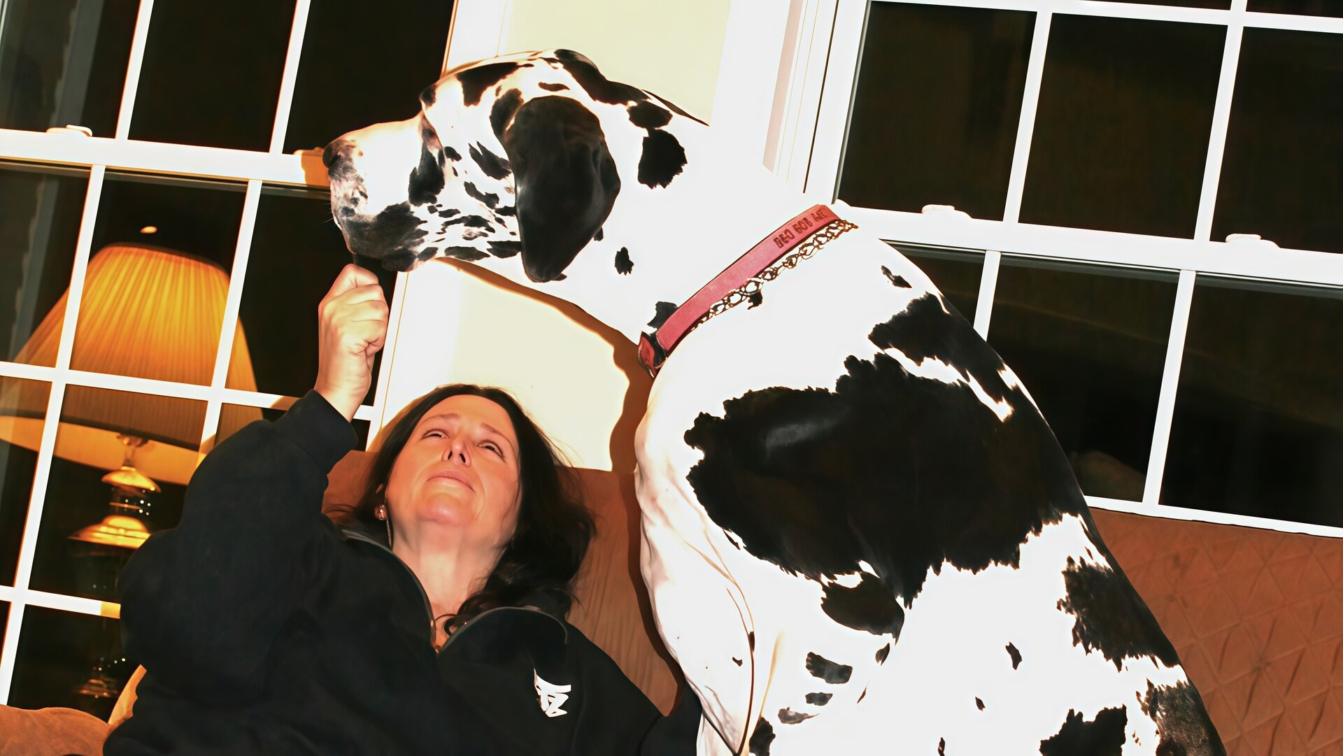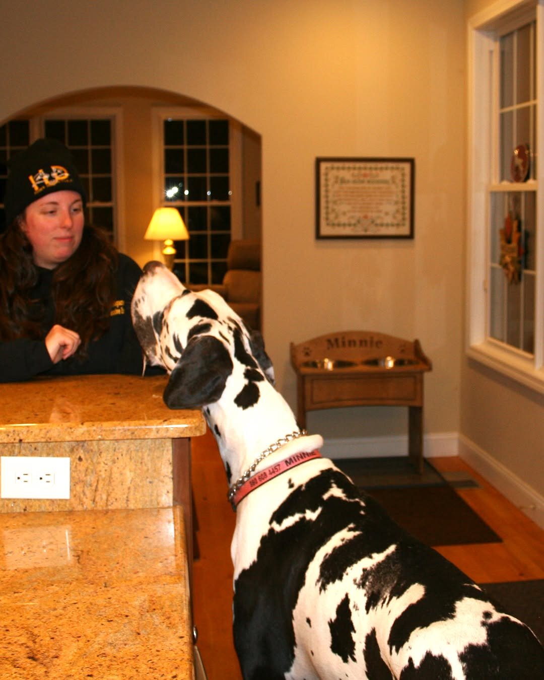 Когда Минни попала в семью Кена и Лизы, она была обычным щенком породы немецкий дог. Но спустя несколько месяцев она начала быстро расти и вовсе не собиралась сбавлять темпы. Когда ей было чуть меньше года, собака уже весила 16 кг.