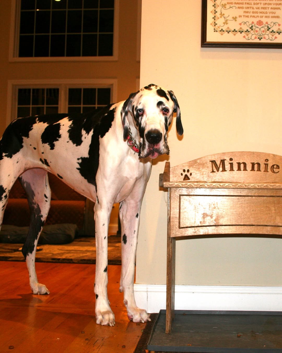 Сейчас Минни 3,5 года. Ее рост от пола до холки составляет 97,5 см. Предыдущий рекорд (96,41 см) принадлежал собаке по кличке Лиззи из Флориды и был установлен в 2014 году. Абсолютный же рекорд в истории (98,15 см) до сих пор удерживает собака Морган из Канады.