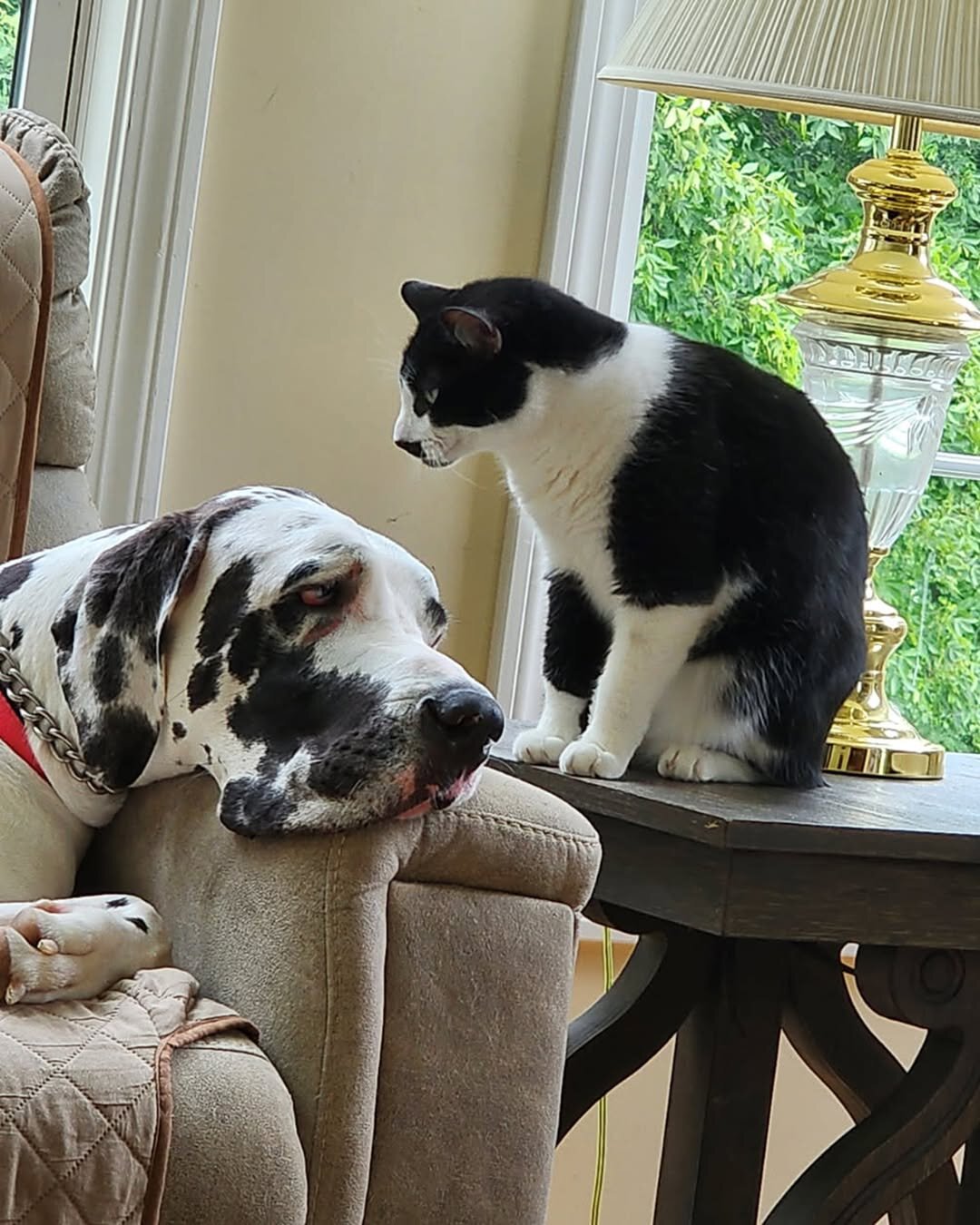 Книга рекордов Гиннесса зарегистрировала новый рекорд среди собак. Теперь самой высокой самкой сейчас является Минни, и ее кот явно в шоке от ее размеров