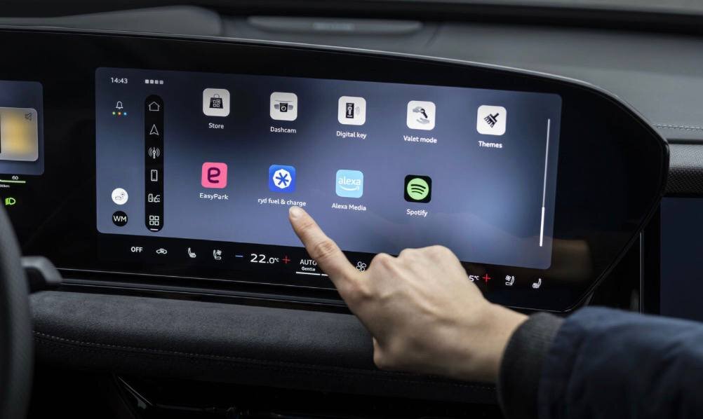 Приложение «ryd» предлагает бесконтактную заправку, зарядку и мойку с удобным процессом оплаты. В Германии оно работает не только на таких известных сетях, как Aral и Esso, но и у многих местных поставщиков, а также на 90% всех зарядных станций. Сервис охватывает более 10 000 автозаправочных станций и более миллиона зарядных станций в Европе. Он работает следующим образом: поблизости автоматически обнаруживаются заправки, на дисплее MMI открывается всплывающее окно с предустановленным приложением, где нужно выбрать заправочную станцию, ввести номер колонки, указать максимальное количество топлива и предпочтительный способ оплаты. После заправки нужно вернуться в машину и дождаться подтверждения на дисплее MMI. После этого можно продолжать движение.
