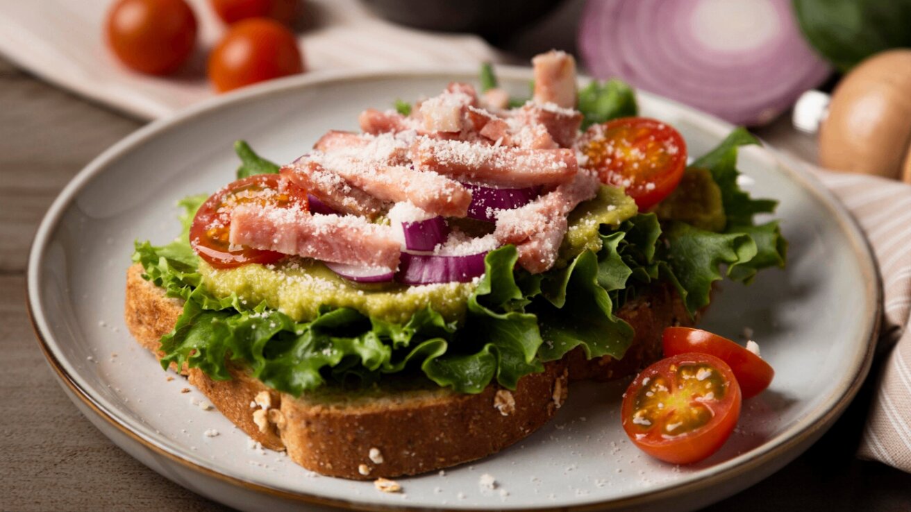 Собрать такой тост можно довольно легко: нужно взять жареный сыр халуми, нежирный бекон и слайсы авокадо. Всё это достаточно положить на ломтик хлеба для тостов и добавить любимый соус или яйцо.