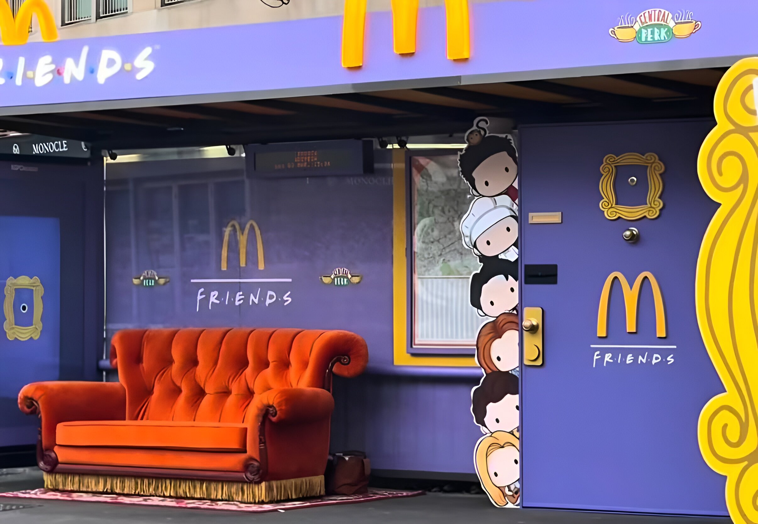 На диван можно присесть и подождать свой автобус, а также сделать множество памятных фото. McDonald’s, там образом, перенёс атмосферу сериала в реальную жизнь и сделал так, чтобы поклонники не только увидели баннеры с «Друзьями», но и ощутили будто находятся на съёмочной площадке.