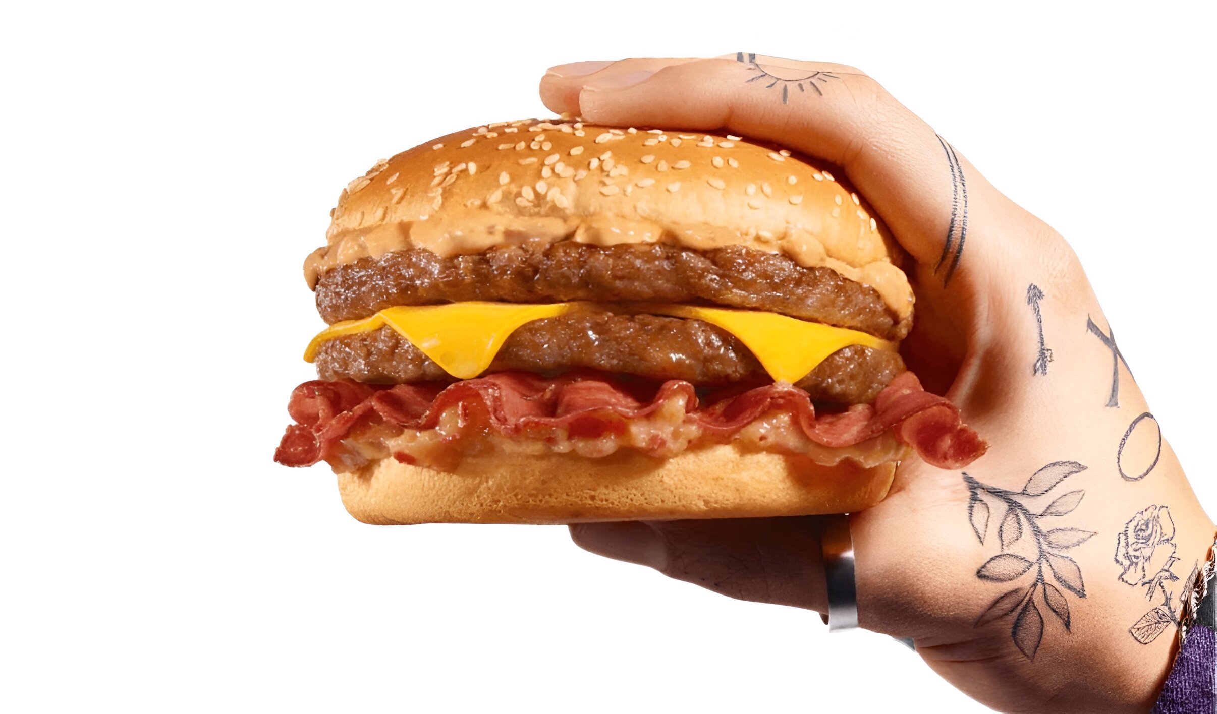 В составе две котлеты из говядины или курицы, ломтики плавленного сыра, луковый соус, карамелизированный лук и большая порция бекона. Всё это покрывает мягкая булочка с кунжутом. В дополнение к бургеру предлагается взять картофель фри с беконом и роллы, которые приготовлены также с добавлением ломтиков бекона.