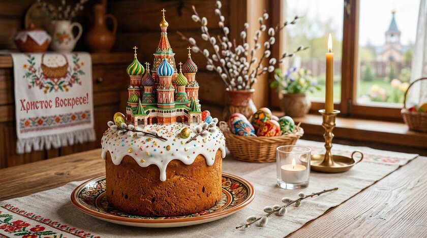 Московская кондитерская запустила в продажу кулич с точной копией собора, который расположен на Красной площади. Храм Василия Блаженного на нём выглядит как настоящий.