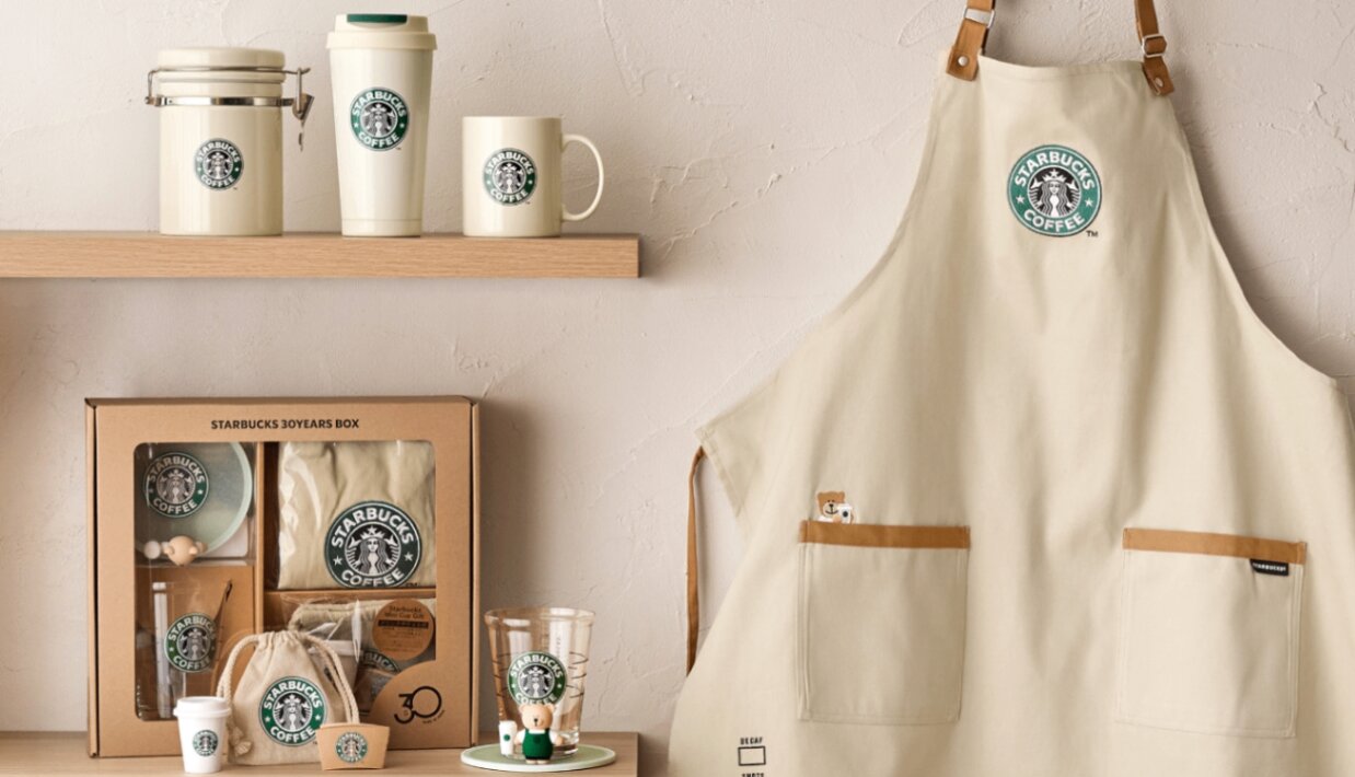 В честь 30-летия своего присутствия в Японии бренд Starbucks выпустил коллекцию фирменных предметов для дома. Появился там и отдельный подарочный набор.