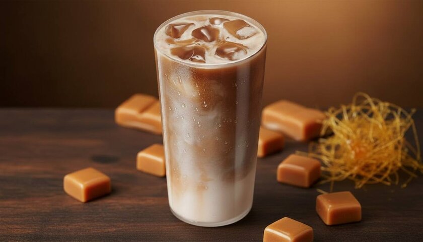 В составе: эспрессо, молоко, карамельный сироп и кубики льда. Объём напитка составляет 300 мл. Энергетическая ценность — 135 Ккал. Позиция уже доступна в мобильном приложении сети, доставке и киосках заведений.
