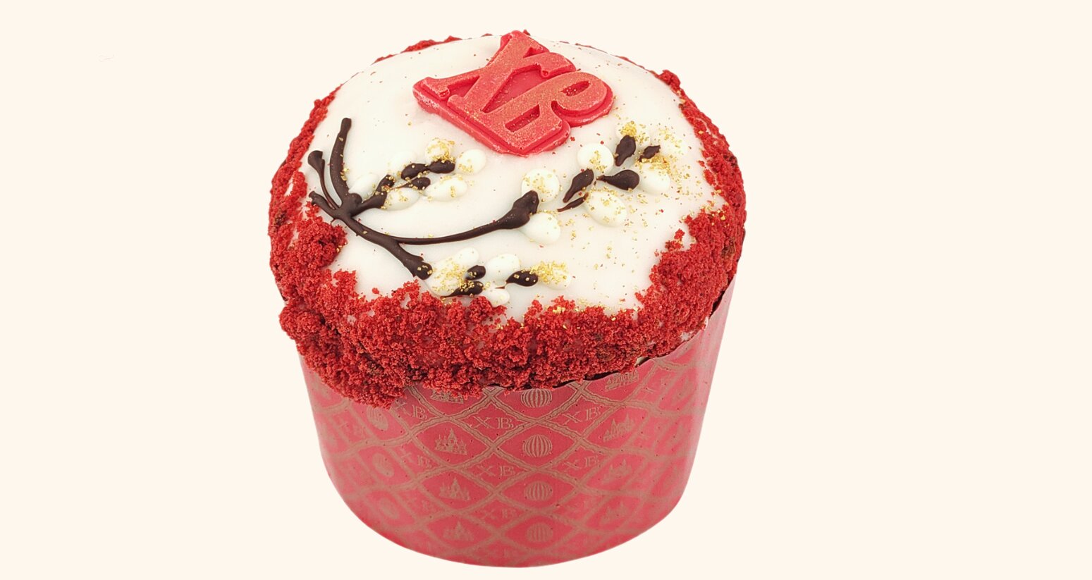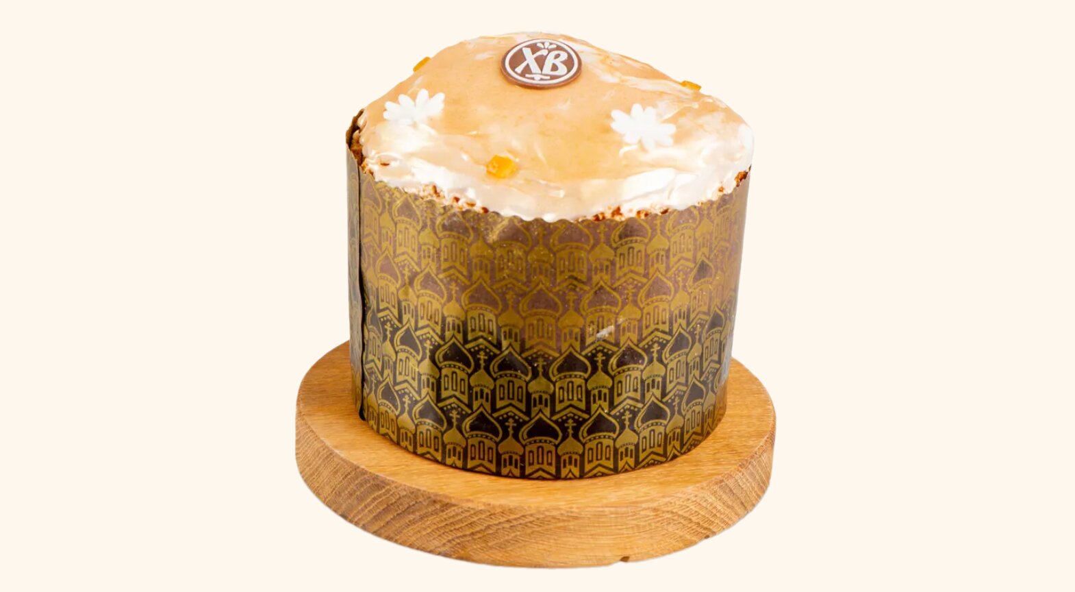 Праздничный кулич с кремом со вкусом пломбира и добавлением сгущённого молока в стиле торта «Красный бархат». Сверху украшен декором с буквами «ХВ», шоколадными веточками вербы и белой глазурью. Масса — 600 грамм. Приобрести можно в сети «Лента».