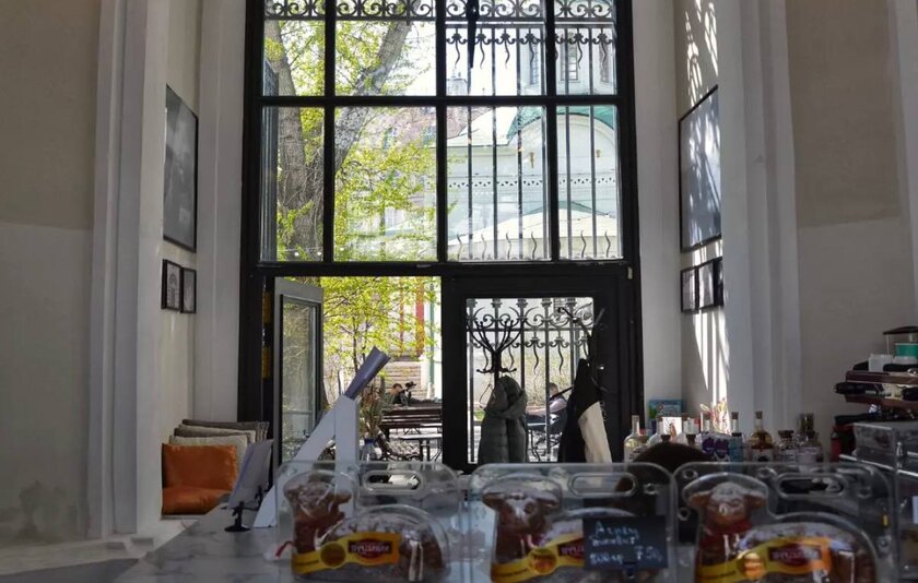 Кофейня предлагает разные виды кофе, чай и свежую выпечку. В интерьере можно увидеть витражные окна, старинную люстру и картины на религиозную тематику. Летом открыта тихая веранда с видом на храм.