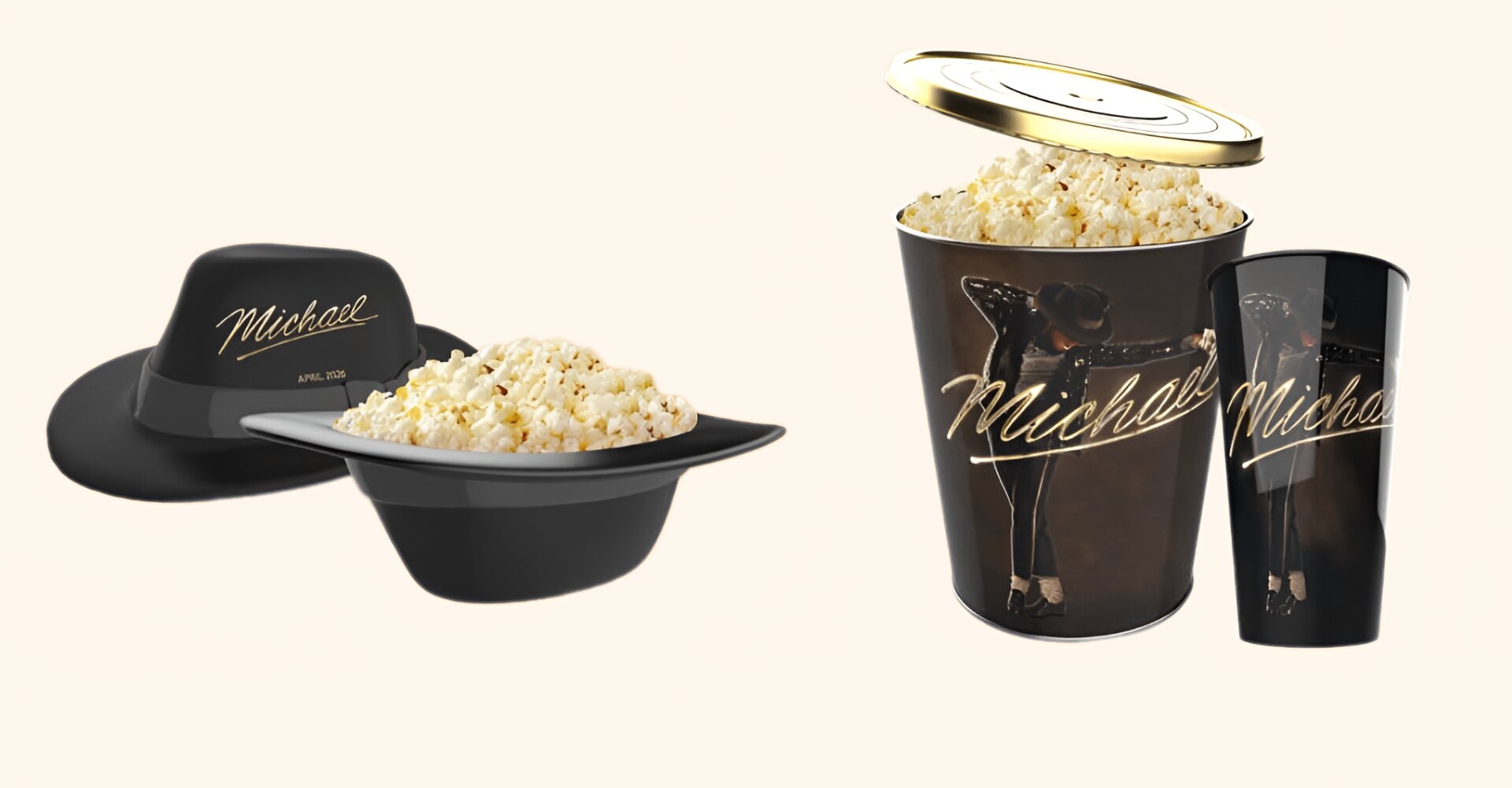 Известная сеть кинотеатров Cinemark запустила в продажу коллекцию предметов по фильму «Майкл», который выйдет на большие экраны 24 апреля. Среди прочего там есть уникальная шляпа для попкорна в стиле певца.