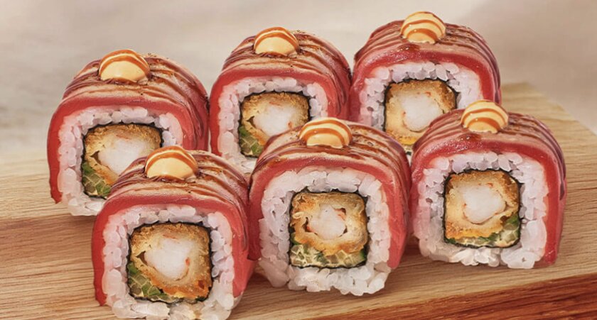 - Роллы «Опаленный тунец» с креветкой темпура и «Копченый угорь с клубникой», но последний доступен только в зале