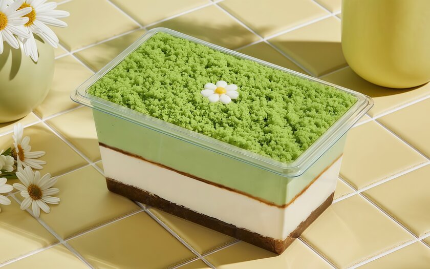 В основе новинки — насыщенный крем из маскарпоне с добавлением японского зеленого чая матча и печенья савоярди, пропитанного кофейным сиропом. Десерт отличается балансом между сладостью и благородной горчинкой.