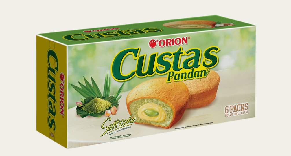 Российские торговые сети представили новые пирожные от Orion Vietnam. Они называются Custas и имеют уникальный вкус пандана.