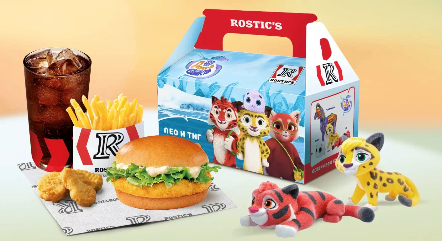 В России скоро выйдет полнометражный мультфильм «Лео и Тиг. Дорога на Байкал». Сеть Rostic's выпустила комбо-набор с игрушками в виде любимых многими детьми персонажей.