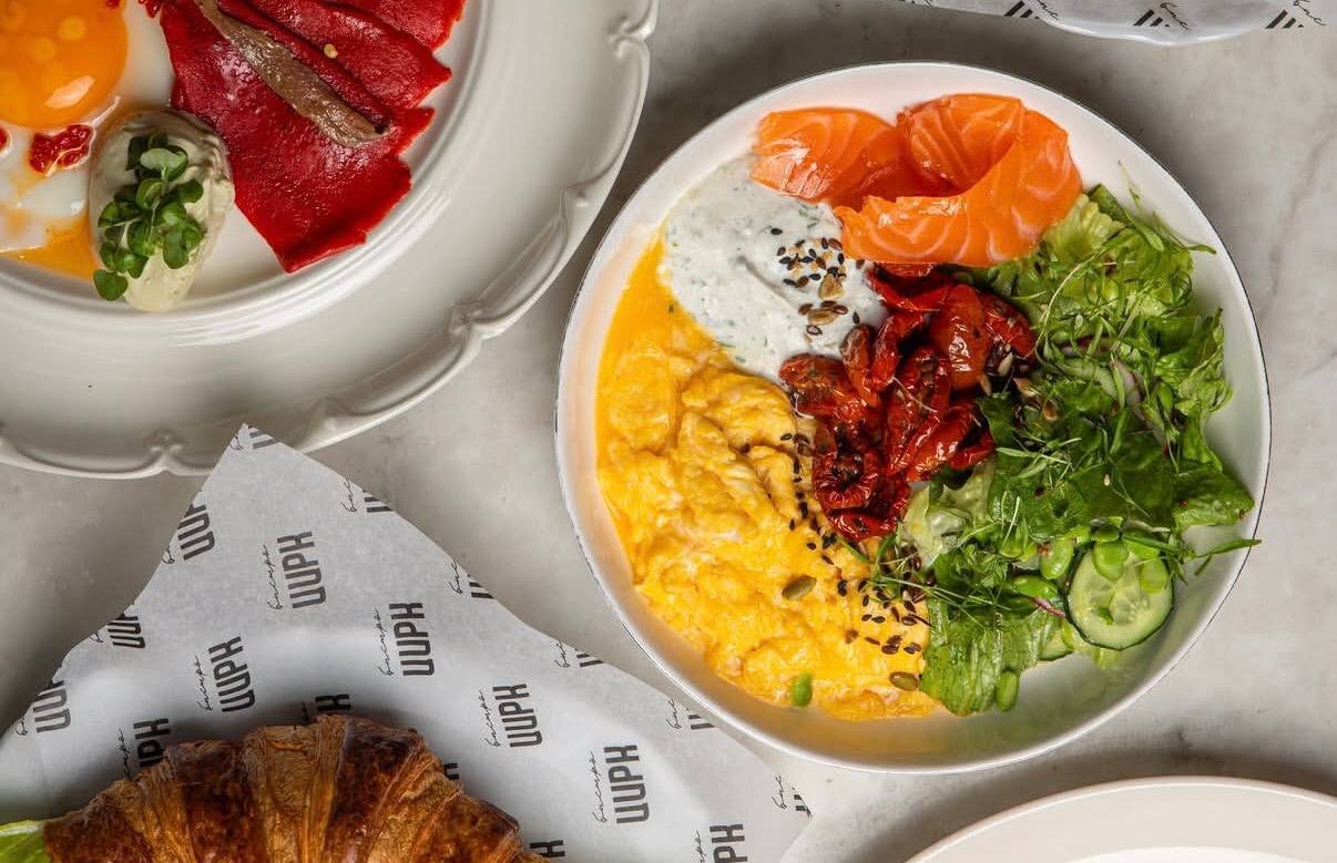 Свой первый за день приём пищи можно осуществить там с 12 до 17 часов дня. В меню: французский круассан с маслом и джемом, авокадо и лососем или с домашним песто и ветчиной, хашбраун с яйцом пашот и голландским соусом, либо с лососем, глазунья с печеным перцем рамиро и анчоусами, боул с зеленой гречкой, курицей гриль и греческим дзадзыки, а также большой скрембл с лососем, маринованными черри и зеленым салатом. Можно добавить к каждому блюду любые дополнительные ингредиенты.