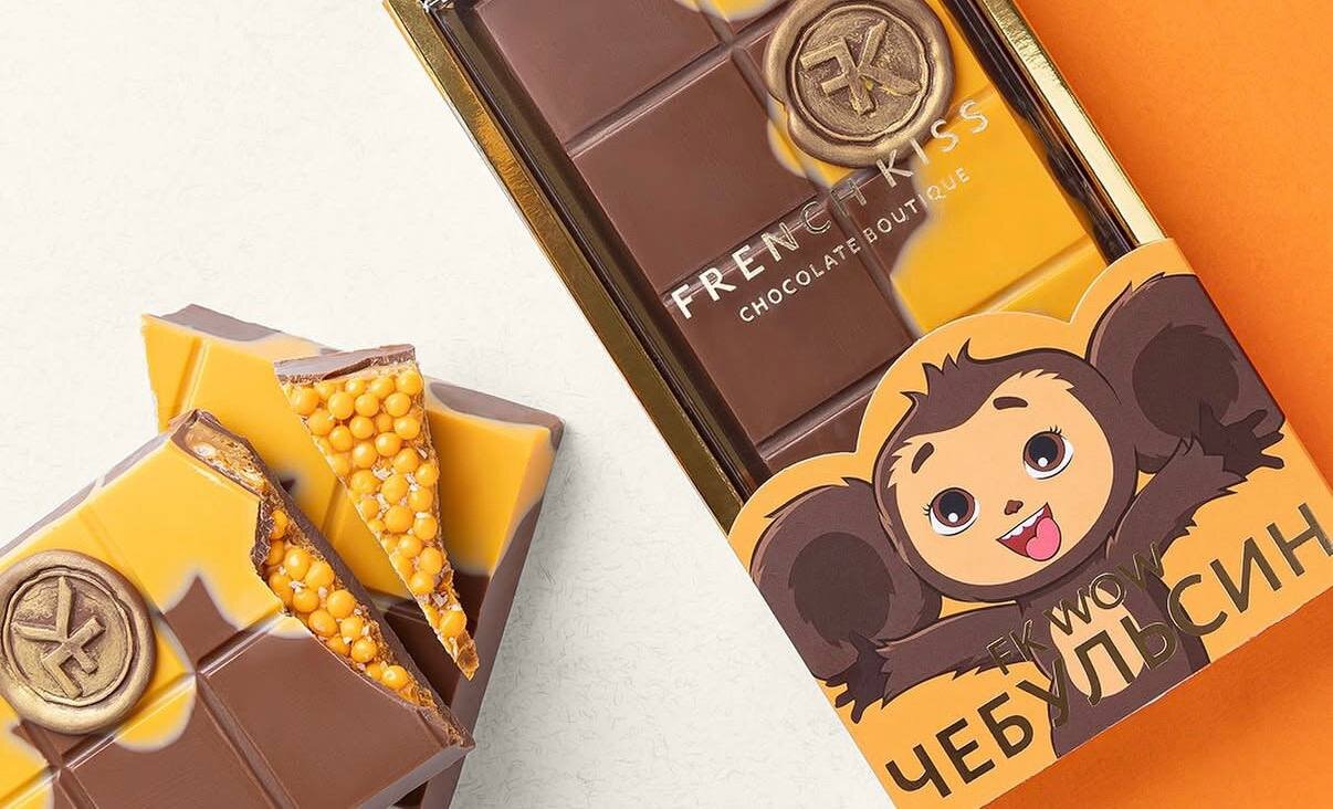 Сеть магазинов French Kiss представила новинку — шоколадную плитку под названием «FKWOW Чебульсин». Она состоит из взрывной карамели и апельсина и напоминает культового персонажа времён СССР и современности — Чебурашку.