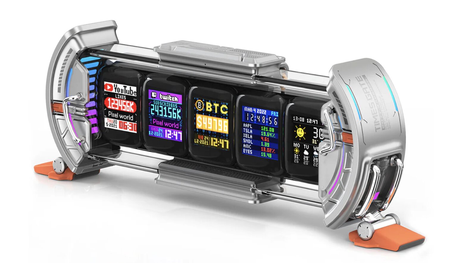 Нам на просторах интернета понравилась модель Divoom Times Gate, обладающая сразу пятью экранами, на каждый из которых можно вывести что-то свое и даже запрограммировать персонально. Это классный аксессуар для тех, кто любит с чем-то поковыряться.