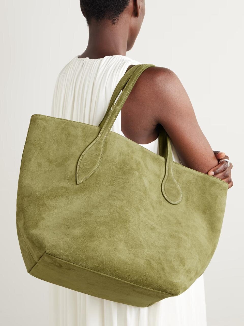 Самые популярные в этом сезоне сумки-тоут имеют мягкую структуру и большой размер. В нашей редакции NET SUSTAIN стиль Liffner с игривым названием «Sprout» выполнен из замши травянисто-зеленого цвета и имеет неструктурированную квадратную форму, которая удобно ложится на тело.