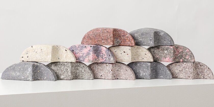 Вместо того чтобы рассматривать рис как пищевой продукт, дизайнеры воспринимают его как физическое вещество с отчетливыми структурными и сенсорными свойствами. Сочетая рис с различными связующими веществами, они создали формообразующий и быстросохнущий композитный материал. Крупные рисинки остаются видимыми и осязаемыми на поверхности, в то время как мелкий помол делает структуру более гладкой и однородной.