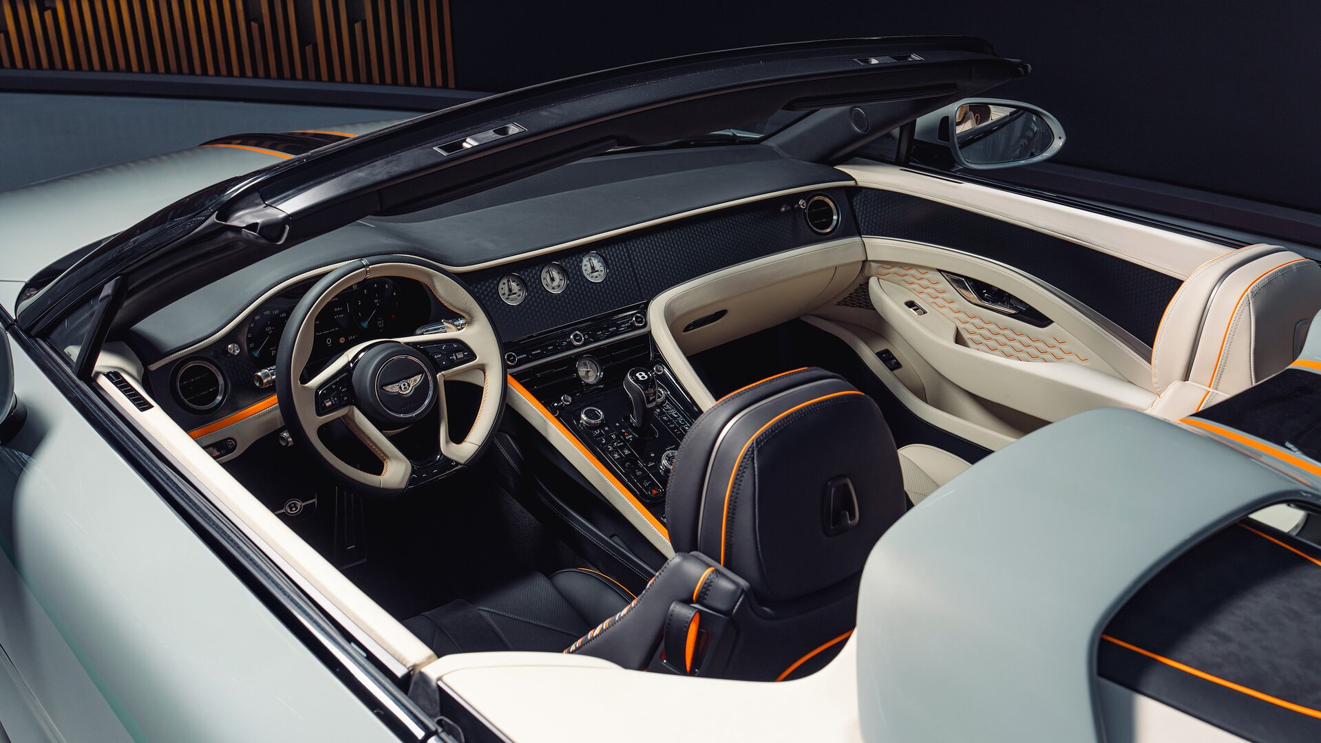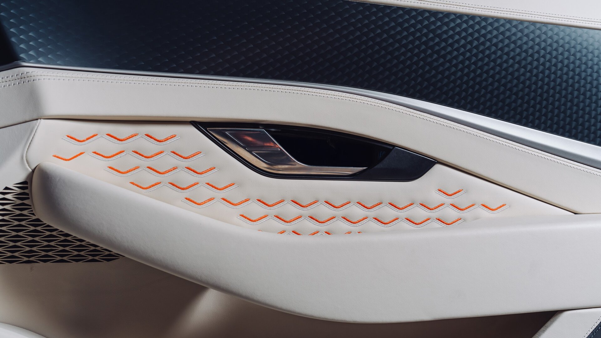 Автомобиль выделяется уникальным дизайном интерьера «Один плюс один», который визуально разделяет водителя и пассажира. Отделка водительского сиденья выполнена из кожи Beluga с цветовыми акцентами Mandarin и Linen. Пассажирское сиденье отличается льняной и мандариновой строчкой. Багажное отделение выполнено в том же дизайне. Также интерьер предлагает множество деталей из титана.